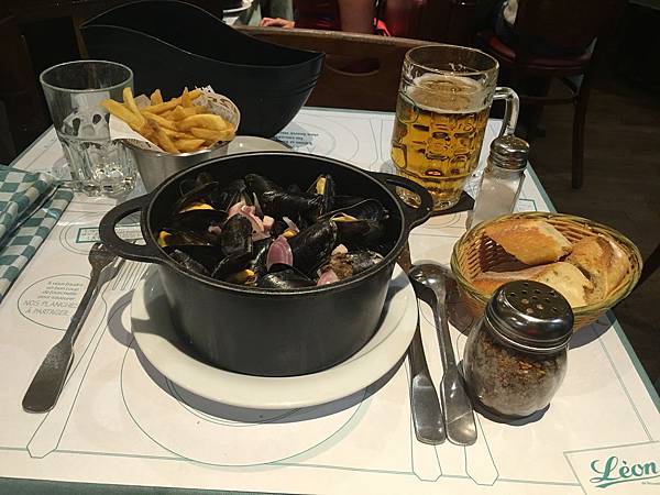淡菜應該就是淡水孔雀蛤的遠房親戚,真的可以吃吃看只是到最後有點膩所以要搭配法國麵包跟旁邊的薯條